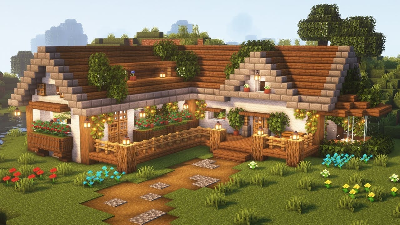 A cozy farmhouse in Minecraft